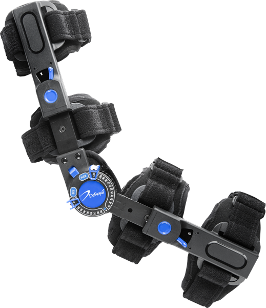 • Hinge is easily adjusted in 10-degree increments (Flexion: 0° to 120°, Extension: 0° to 90°)
